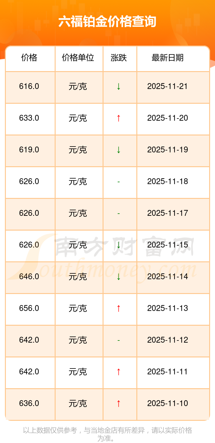 以上數(shù)據(jù)僅供參考,與當?shù)仄放粕、金店、企業(yè)及銀行營業(yè)廳報價有所差異,依產(chǎn)品不同需另附工費,請以實際報價為準。本站對價格等不作任何保證或承諾,請自行核實相關(guān)內(nèi)容,因此所引起的后果與本站無關(guān)。