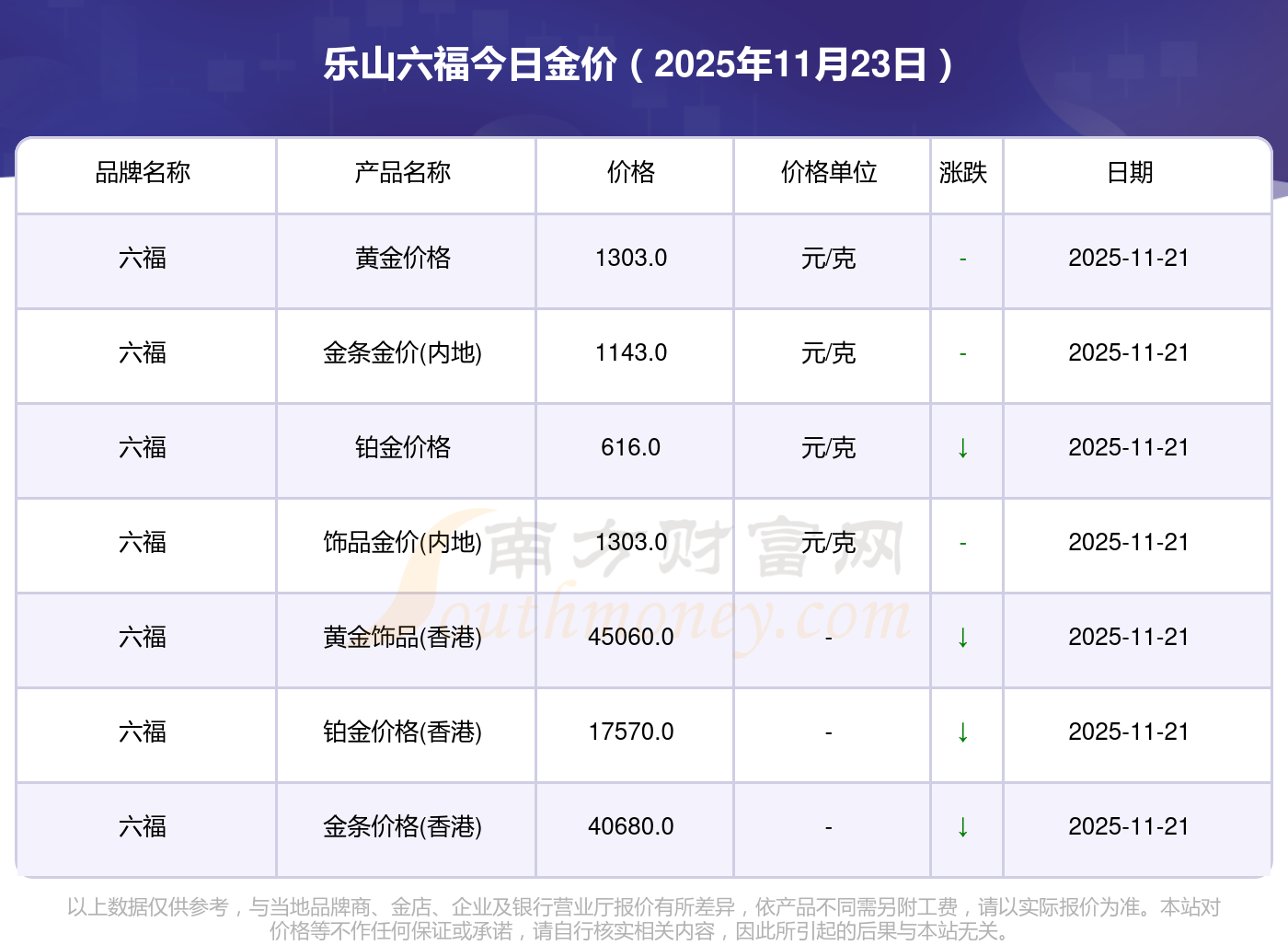 樂山六福金價今日價格最新_樂山六福黃金多少錢一克2025年11月23日,隨小編來了解一下詳情。