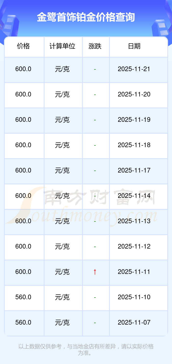 今日金鷺首飾鉑金價(jià)格是600.0元/克。