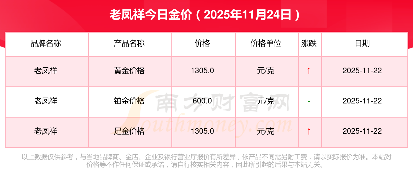 老鳳祥黃金在今日的定價(jià)為多少?黃金價(jià)格1295.0元/克,鉑金價(jià)格614.0元/克,飾品金價(jià)(內(nèi)地)1295.0元/克,黃金飾品(香港)45100.0,鉑金價(jià)格(香港)17510.0,金條價(jià)格(香港)40680.0,金條金價(jià)(內(nèi)地)1134.0元/克,黃金價(jià)格1305.0元/克,鉑金價(jià)格600.0元/克,足金價(jià)格1305.0元/克,黃金價(jià)格1266.0元/克。