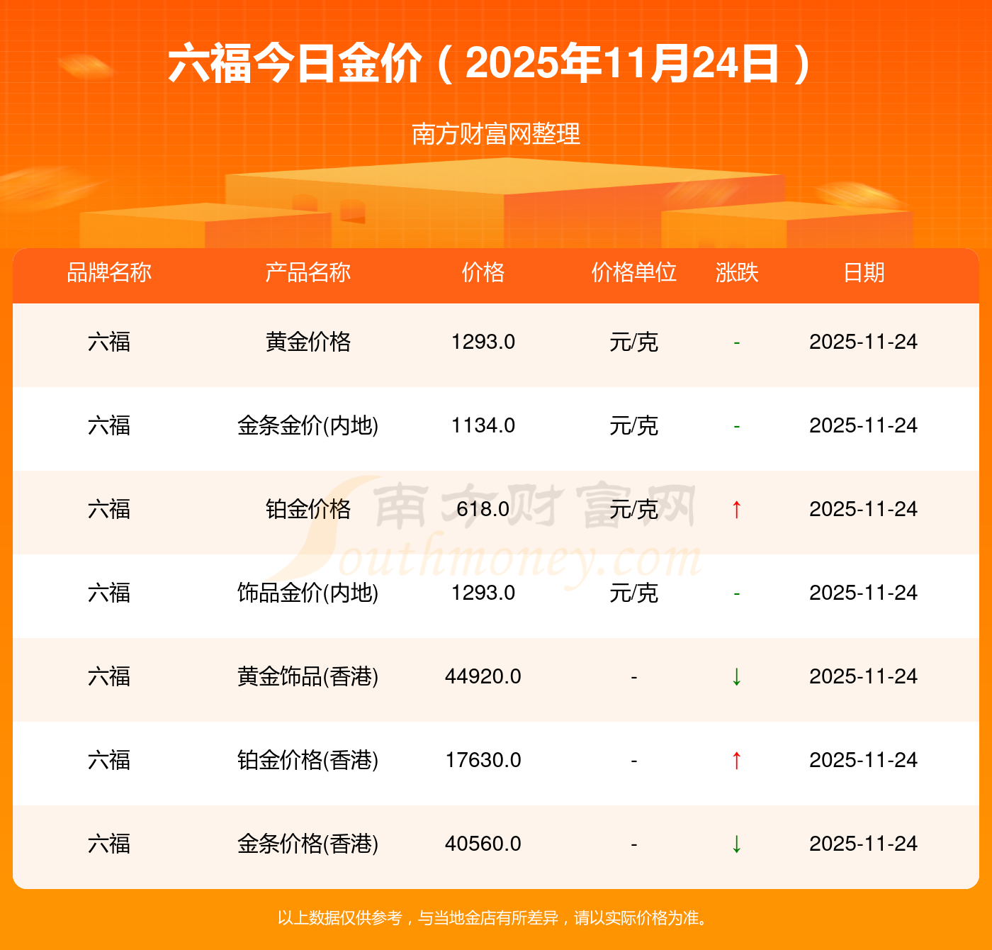 鉑金價(jià)格(香港)17630.0,金條價(jià)格(香港)40570.0,金條金價(jià)(內(nèi)地)1134.0元/克,黃金價(jià)格1295.0元/克,鉑金價(jià)格600.0元/克,足金價(jià)格1295.0元/克,黃金價(jià)格1259.0元/克,鉑金價(jià)格590.0元/克,PT999鉑金價(jià)格590.0元/克,金條價(jià)格1154.0元/克,黃金價(jià)格1293.0元/克。