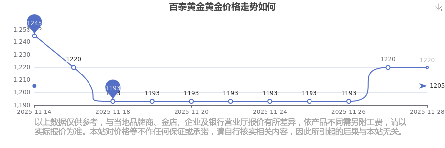 今日百泰黃金黃金價格最新為1220.0元/克。