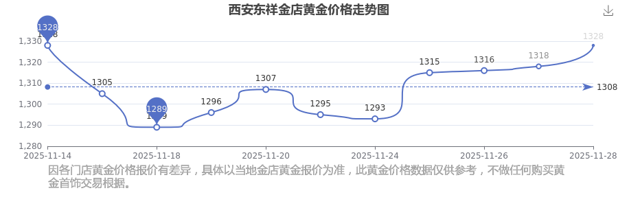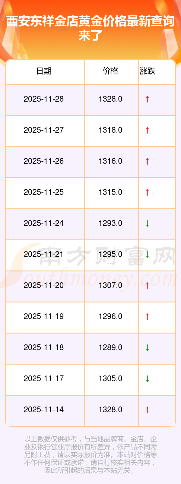 今日西安東祥金店黃金價格查詢,今日西安東祥金店黃金價格的價格為1328.0元/克。