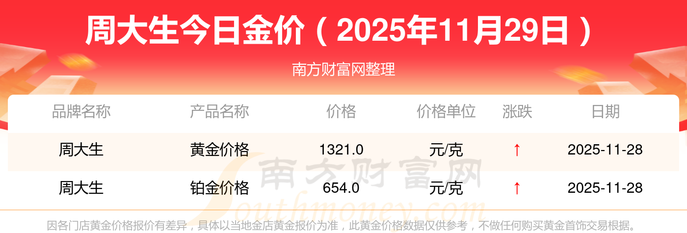 現(xiàn)在周大生黃金價(jià)格是多少錢1克_2025年周大生今日金價(jià)是多少錢一克,最新周大生查詢,2025年11月29日周大生黃金價(jià)格現(xiàn)在每克多少錢?最新周大生黃金價(jià)格報(bào)價(jià)公布,一起來(lái)看看吧!