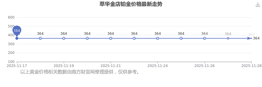 萃華金店 鉑金價格在今日的最新價格顯示為364.0元/克。