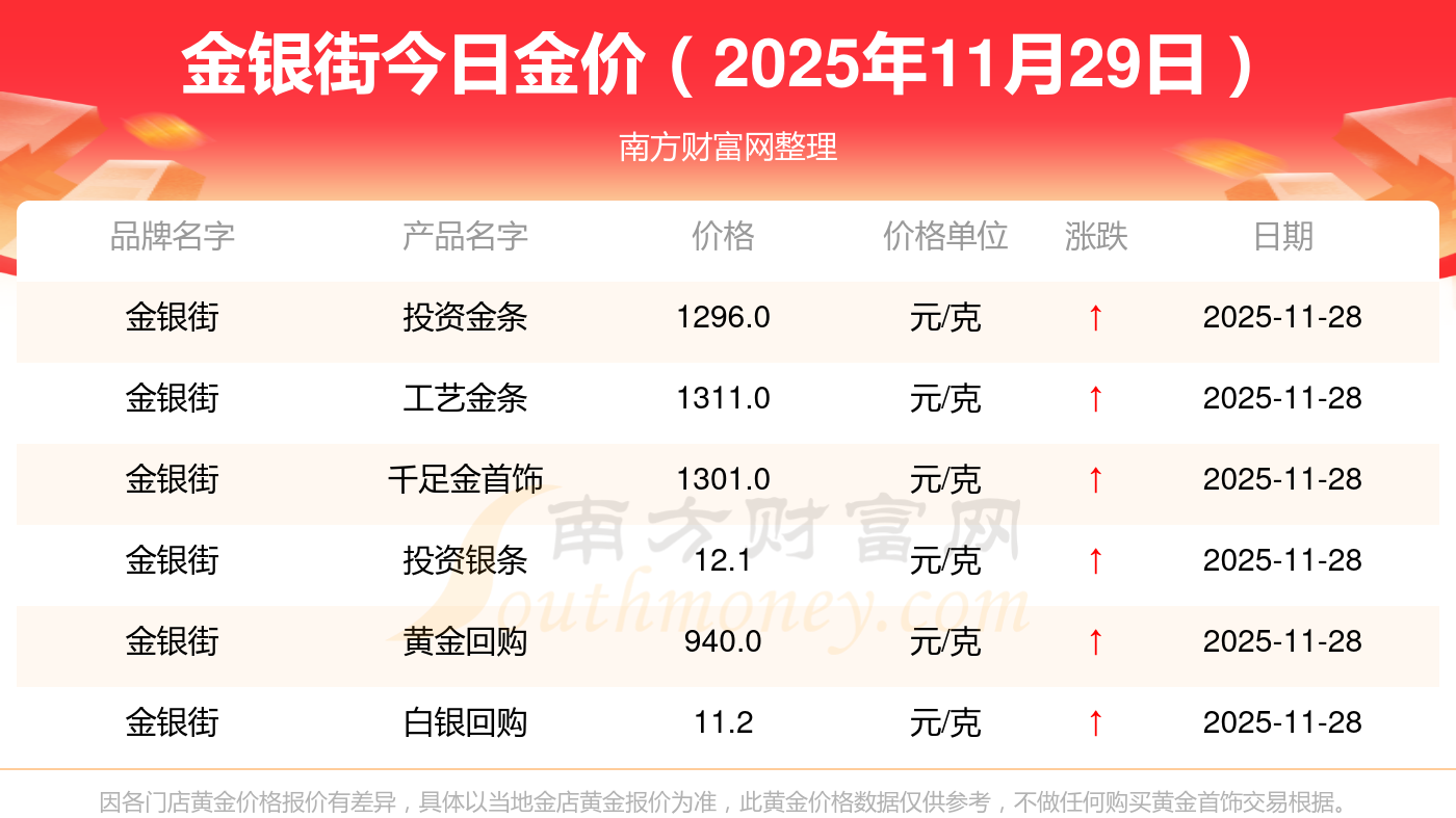 金銀街今日金價的具體數(shù)字是怎樣的?數(shù)據(jù)來了:黃金價格1321.0元/克,鉑金價格600.0元/克,銀條價格12.6元/克,黃金價格1321.0元/克,鉑金價格600.0元/克,金條價格(內(nèi)地)1207.0元/克,金飾價格(內(nèi)地)1321.0元/克,黃金飾品(香港)46370.0,鉑金飾品(香港)13970.0,金條金價(香港)41860.0,投資金條1296.0元/克。
