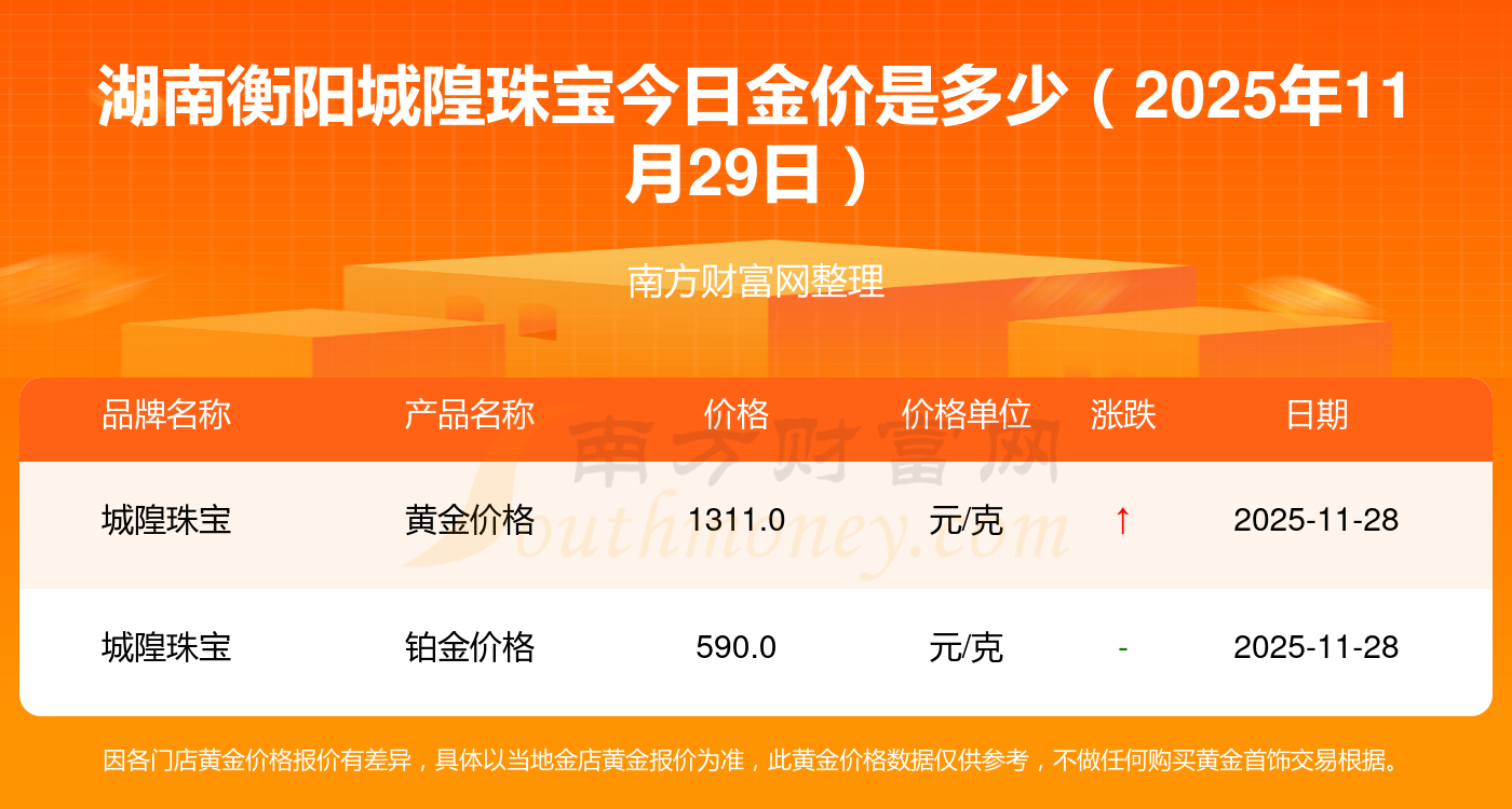 湖南衡陽城隍珠寶金價(jià)今日價(jià)格最新_湖南衡陽城隍珠寶黃金多少錢一克2025年11月29日,隨小編來了解一下詳情。