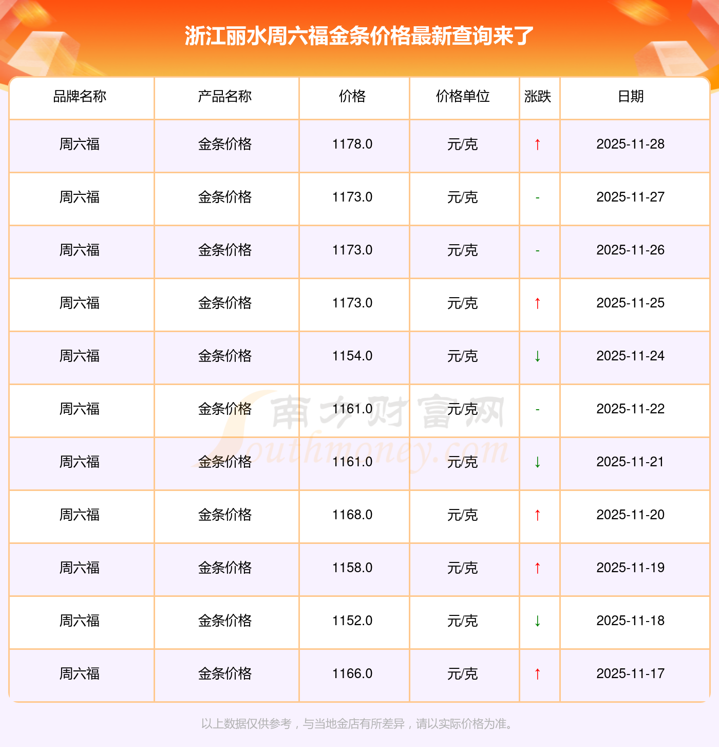 2025年11月29日,星光達珠寶、星光達珠寶、寶泉錢幣、金蘭首飾、金蘭首飾、謝瑞麟、謝瑞麟、謝瑞麟、謝瑞麟、謝瑞麟、金銀街等各大金店品牌金條價格今日價格如下:星光達珠寶1321.0元/克、星光達珠寶600.0元/克、寶泉錢幣12.6元/克、金蘭首飾1321.0元/克、金蘭首飾600.0元/克、謝瑞麟1207.0元/克、謝瑞麟1321.0元/克、謝瑞麟46370.0、謝瑞麟13970.0、謝瑞麟41860.0、金銀街1296.0元/克。