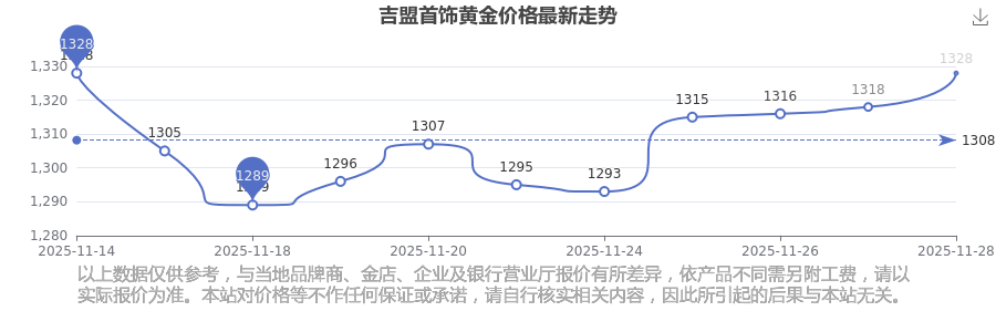 1328.0元/克的價格,是吉盟首飾今日 黃金價格的最新行情。