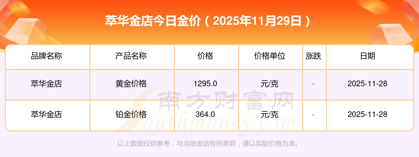 萃華金店今日金價查詢