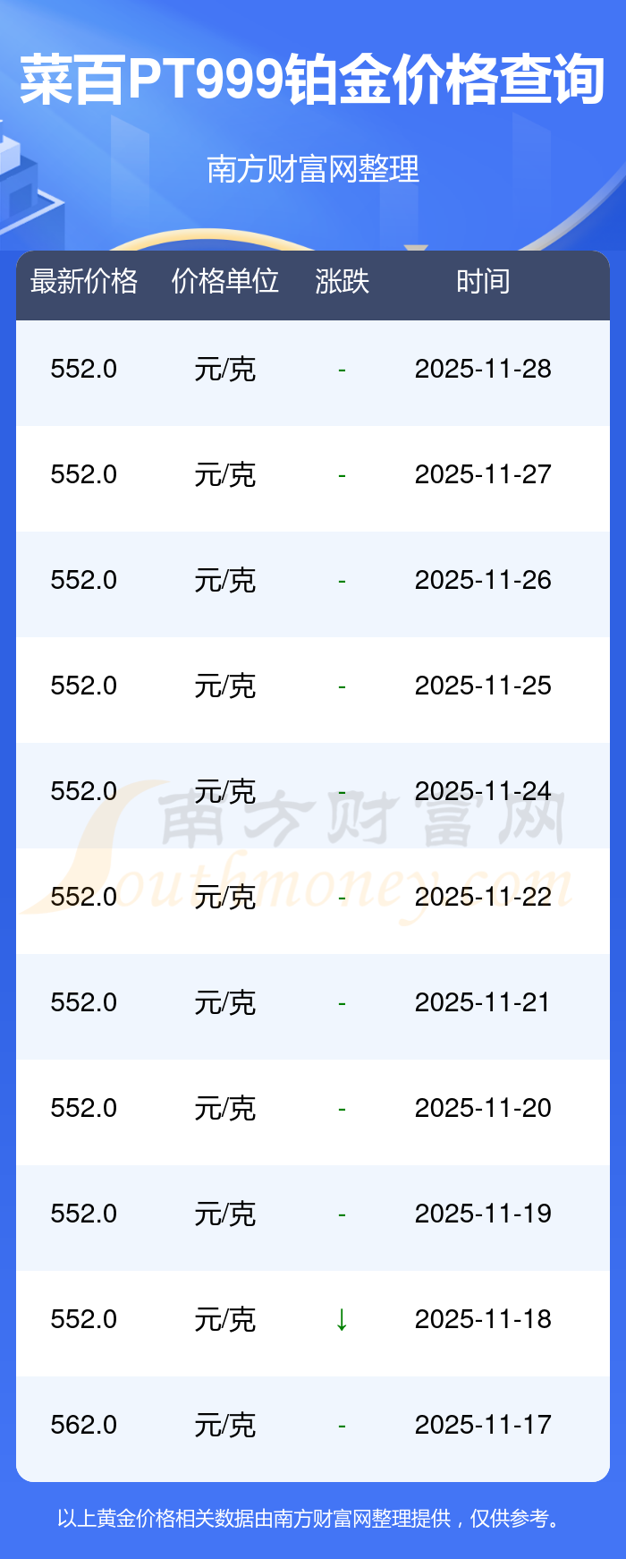 552.0元/克是菜百在今日給出的 PT999鉑金最新價格。