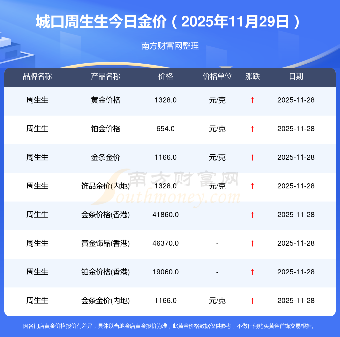 2025年11月29日城口周生生黃金的單價(jià),一克為多少?黃金價(jià)格1321.0元/克,鉑金價(jià)格600.0元/克,銀條價(jià)格12.6元/克,黃金價(jià)格1321.0元/克,鉑金價(jià)格600.0元/克,金條價(jià)格(內(nèi)地)1207.0元/克,金飾價(jià)格(內(nèi)地)1321.0元/克,黃金飾品(香港)46370.0,鉑金飾品(香港)13970.0,金條金價(jià)(香港)41860.0,投資金條1296.0元/克。