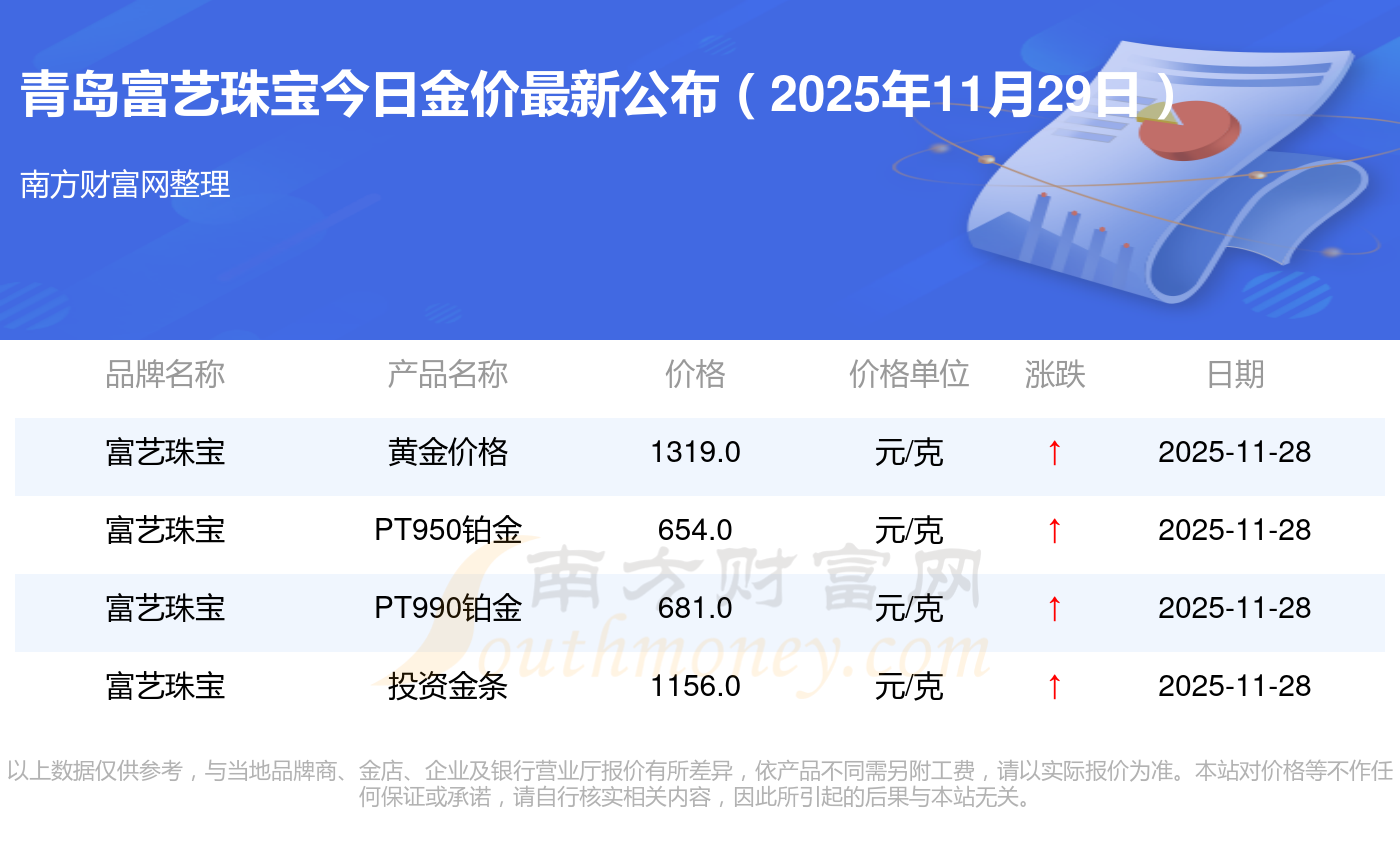 2025年11月29日富藝珠寶金條多少錢1克 現(xiàn)在青島富藝珠寶黃金價(jià)格查詢