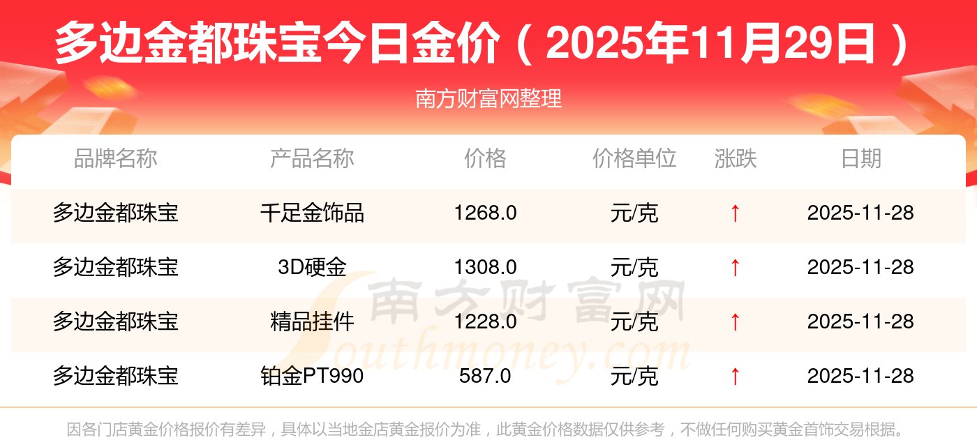 多邊金都珠寶今日金價多少錢一克