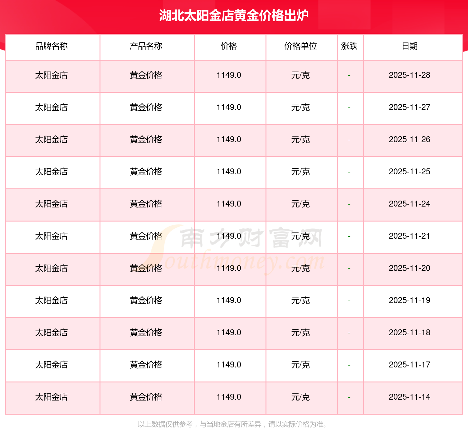 2025年11月29日,星光達珠寶、星光達珠寶、寶泉錢幣、金蘭首飾、金蘭首飾、謝瑞麟、謝瑞麟、謝瑞麟、謝瑞麟、謝瑞麟、金銀街等各大金店品牌黃金價格今日價格如下:星光達珠寶1321.0元/克、星光達珠寶600.0元/克、寶泉錢幣12.6元/克、金蘭首飾1321.0元/克、金蘭首飾600.0元/克、謝瑞麟1207.0元/克、謝瑞麟1321.0元/克、謝瑞麟46370.0、謝瑞麟13970.0、謝瑞麟41860.0、金銀街1296.0元/克。