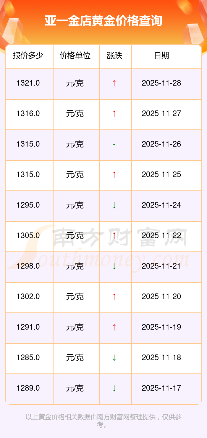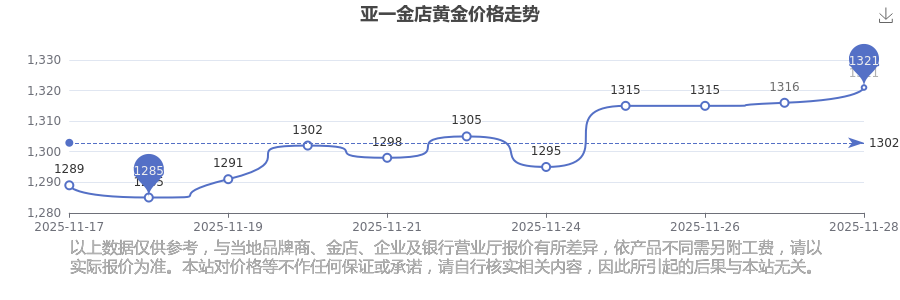 今天黃金價(jià)位怎樣?當(dāng)下一克黃金的價(jià)格為多少?黃金屬于優(yōu)良的導(dǎo)電導(dǎo)熱材料,具有良好的導(dǎo)熱特性。電子工業(yè)中的特殊電路設(shè)計(jì)常采用它,鑒于其化學(xué)穩(wěn)定性高、抗氧化性強(qiáng),能夠制作高精度電子元件。2025年11月29日亞一金店黃金價(jià)格:1321.0元/克。