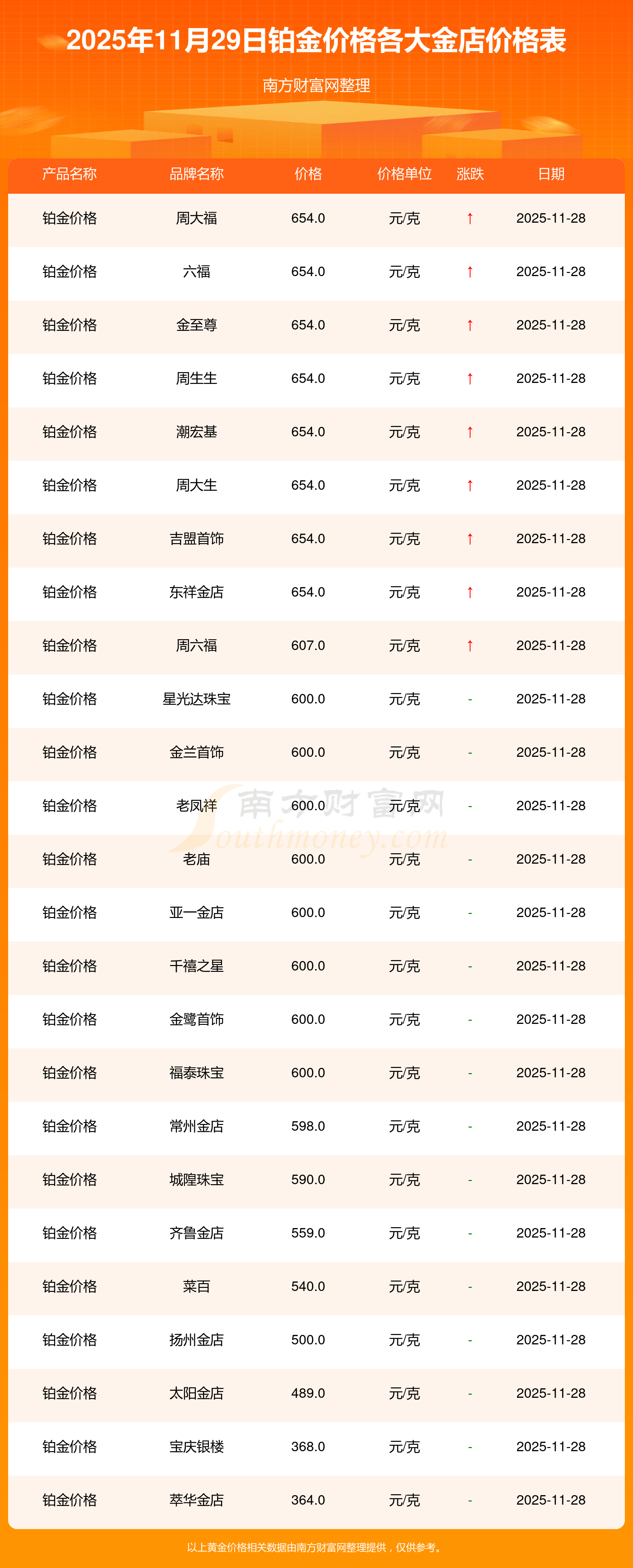 今日鉑金價格多少一克_各金店鉑金價格最新查詢(2025年11月29日),隨小編來看看。