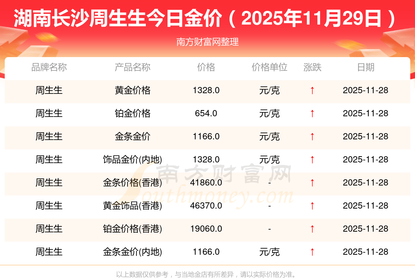 以上數(shù)據(jù)僅供參考,與當(dāng)?shù)亟鸬暧兴町,請以?shí)際價(jià)格為準(zhǔn)。