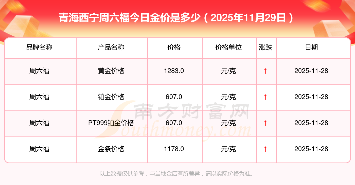 今天黃金價(jià)格幾何?現(xiàn)在每克黃金值多少錢?2025年11月29日青海西寧周六福一克黃金的售價(jià)是多少:黃金價(jià)格1321.0元/克,鉑金價(jià)格600.0元/克,銀條價(jià)格12.6元/克,黃金價(jià)格1321.0元/克,鉑金價(jià)格600.0元/克,金條價(jià)格(內(nèi)地)1207.0元/克,金飾價(jià)格(內(nèi)地)1321.0元/克,黃金飾品(香港)46370.0,鉑金飾品(香港)13970.0,金條金價(jià)(香港)41860.0,投資金條1296.0元/克。