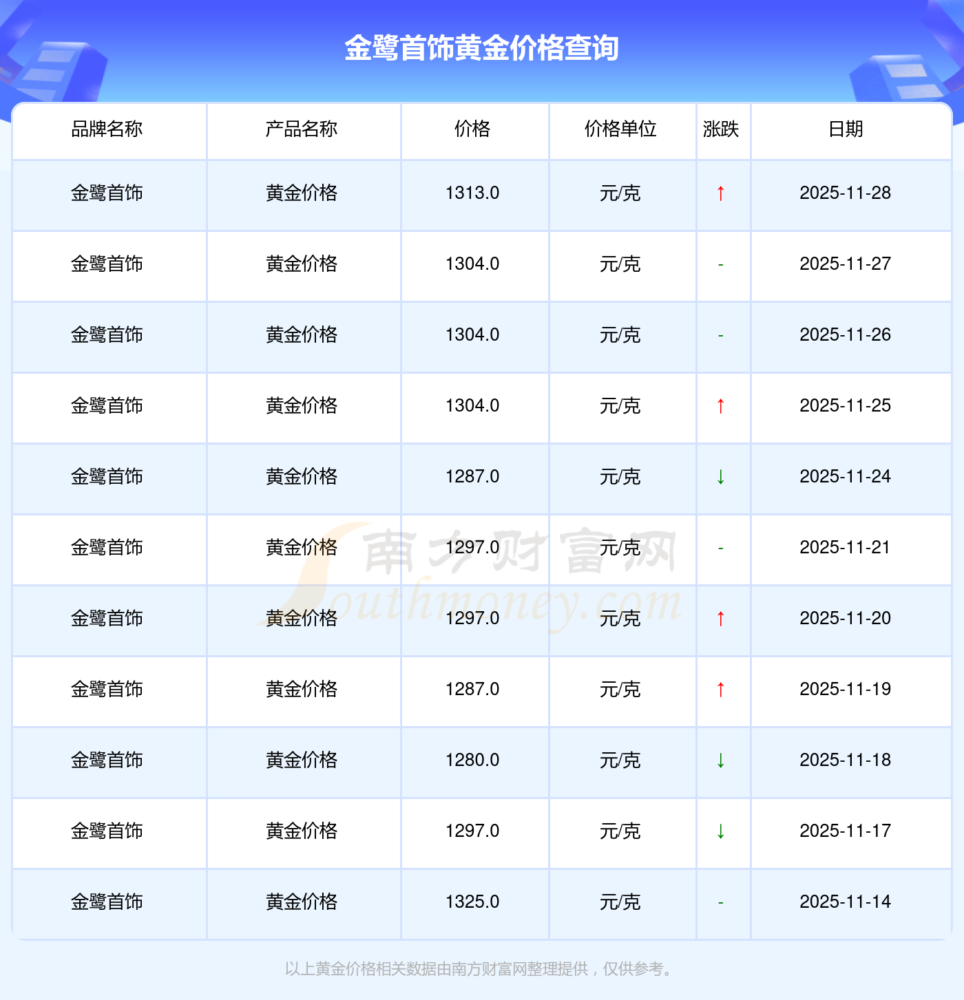 因各門店黃金價(jià)格報(bào)價(jià)有差異,具體以當(dāng)?shù)亟鸬挈S金報(bào)價(jià)為準(zhǔn),此黃金價(jià)格數(shù)據(jù)僅供參考,不做任何購買黃金首飾交易根據(jù)。
