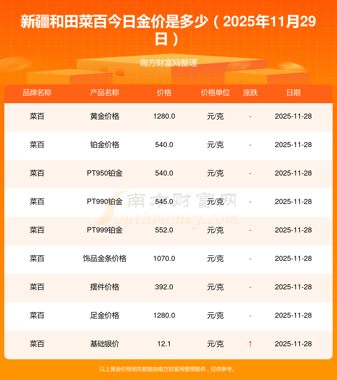 黃金價格1321.0元/克,鉑金價格600.0元/克,銀條價格12.6元/克,黃金價格1321.0元/克,鉑金價格600.0元/克,金條價格(內(nèi)地)1207.0元/克,金飾價格(內(nèi)地)1321.0元/克,黃金飾品(香港)46370.0,鉑金飾品(香港)13970.0,金條金價(香港)41860.0,投資金條1296.0元/克。
