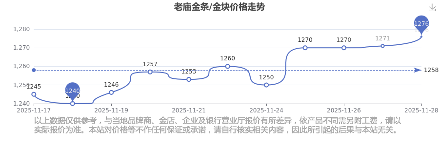 1276.0元/克成為老廟今日 金條/金塊價格的最新交易的價格。