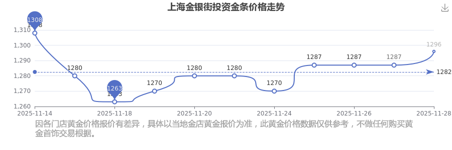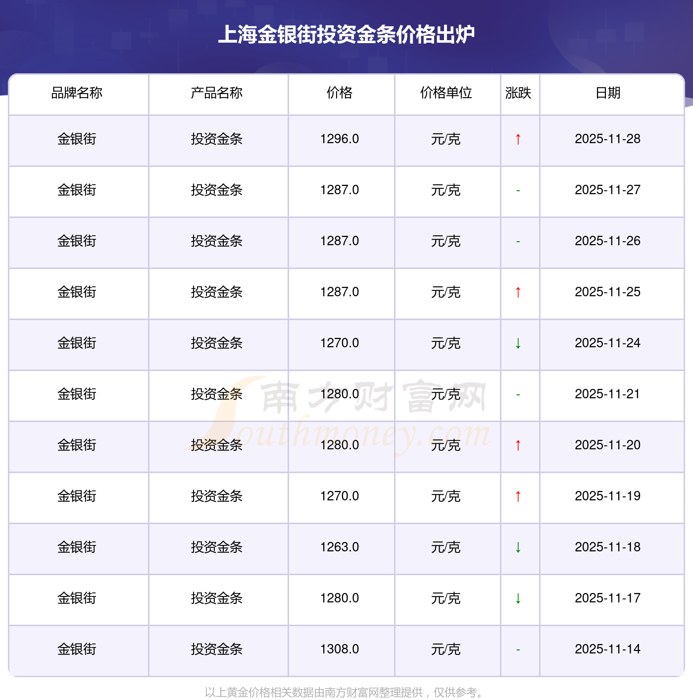 1296.0元/克的投資金條價(jià)格,是上海金銀街在 2025年11月29日給出的。