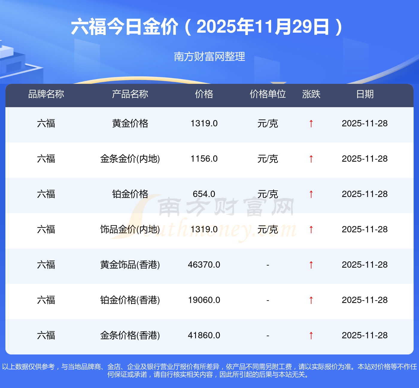 今天是2025年11月29日,星光達(dá)珠寶、星光達(dá)珠寶、寶泉錢幣、金蘭首飾、金蘭首飾、謝瑞麟、謝瑞麟、謝瑞麟、謝瑞麟、謝瑞麟、金銀街等各大金店品牌黃金價(jià)格最新價(jià)格如下:星光達(dá)珠寶1321.0元/克、星光達(dá)珠寶600.0元/克、寶泉錢幣12.6元/克、金蘭首飾1321.0元/克、金蘭首飾600.0元/克、謝瑞麟1207.0元/克、謝瑞麟1321.0元/克、謝瑞麟46370.0、謝瑞麟13970.0、謝瑞麟41860.0、金銀街1296.0元/克。