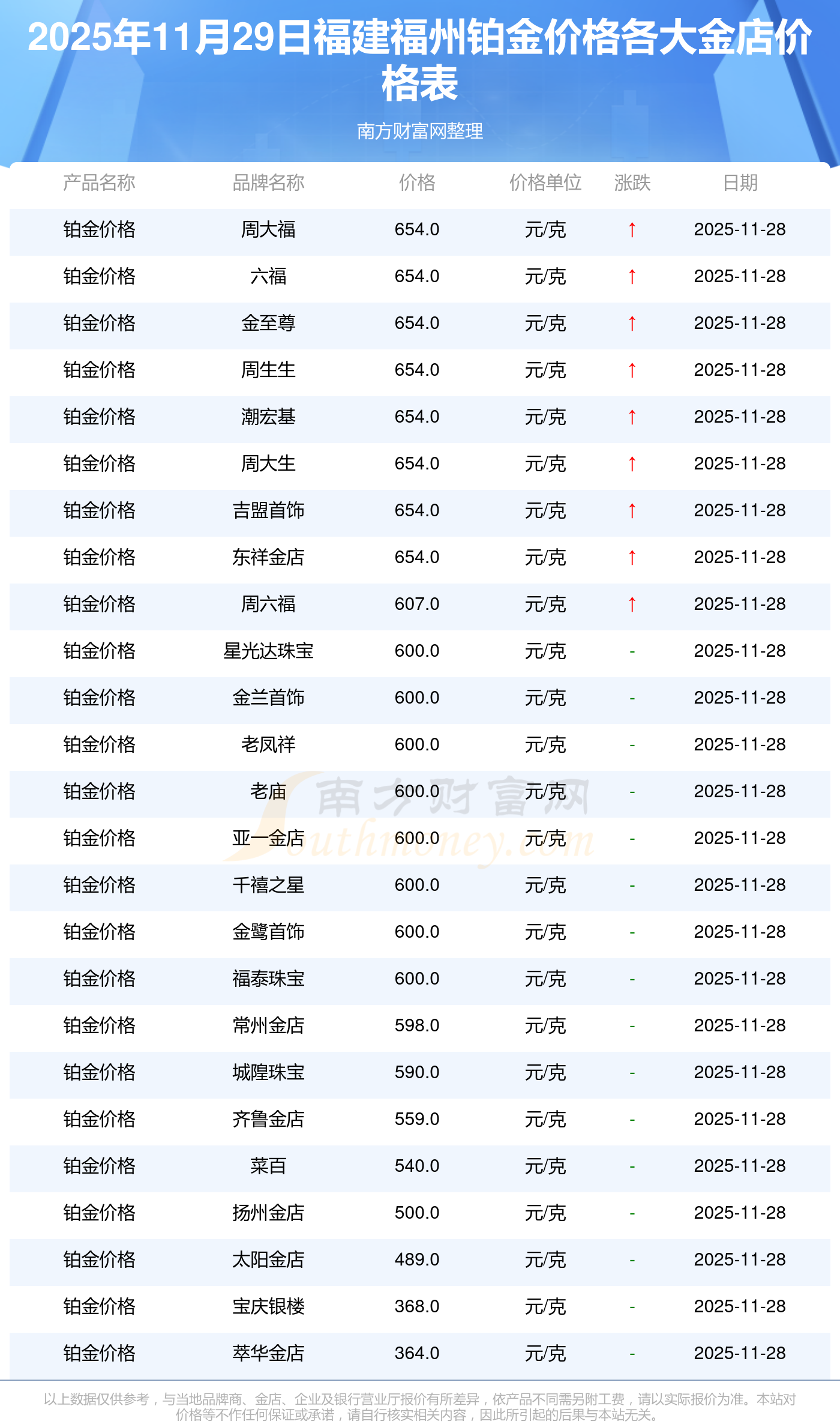 福建福州各金店鉑金價(jià)格是多少錢?
