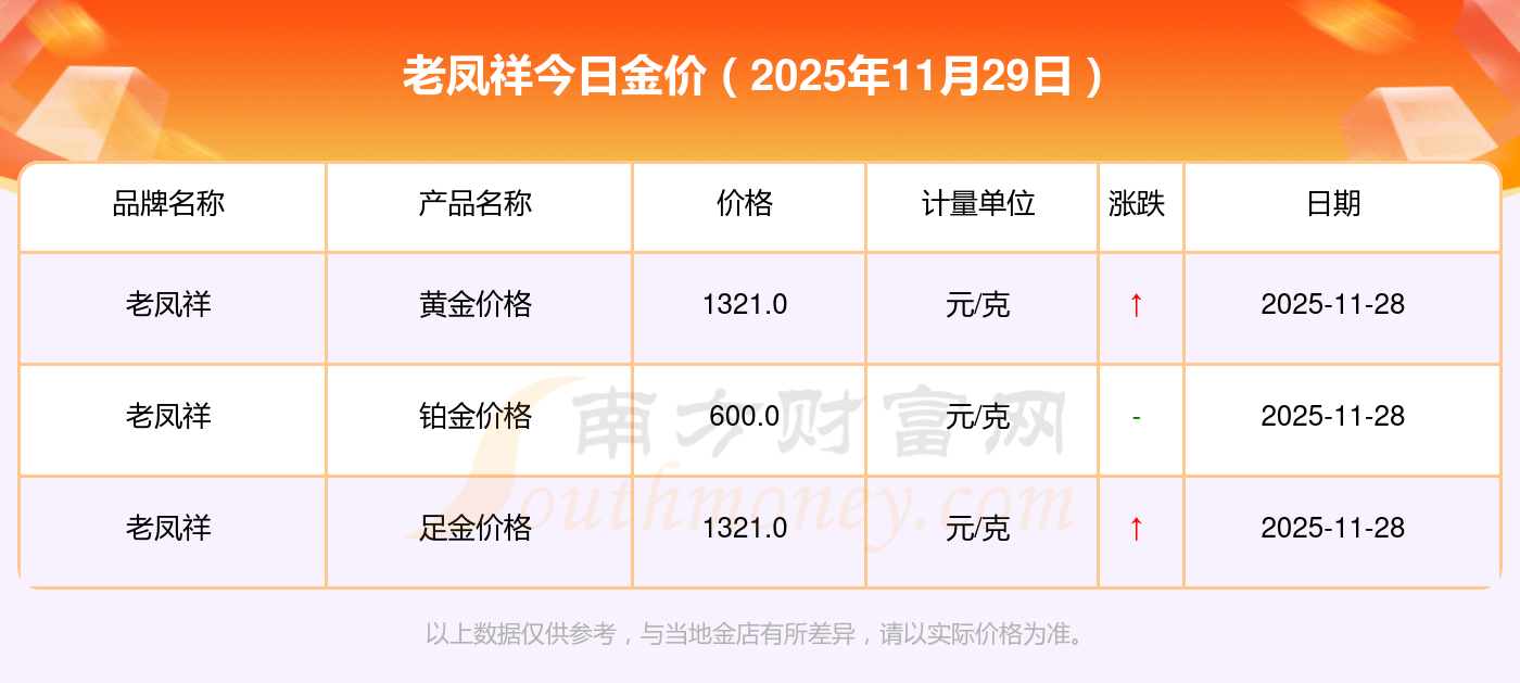 2025年11月29日星光達(dá)珠寶、星光達(dá)珠寶、寶泉錢幣、金蘭首飾、金蘭首飾、謝瑞麟、謝瑞麟、謝瑞麟、謝瑞麟、謝瑞麟、金銀街等各大金店品牌黃金價(jià)格最新價(jià)格如下:星光達(dá)珠寶黃金價(jià)格1321.0元/克,星光達(dá)珠寶鉑金價(jià)格600.0元/克,寶泉錢幣銀條價(jià)格12.6元/克,金蘭首飾黃金價(jià)格1321.0元/克,金蘭首飾鉑金價(jià)格600.0元/克,謝瑞麟金條價(jià)格(內(nèi)地)1207.0元/克,謝瑞麟金飾價(jià)格(內(nèi)地)1321.0元/克,謝瑞麟黃金飾品(香港)46370.0,謝瑞麟鉑金飾品(香港)13970.0,謝瑞麟金條金價(jià)(香港)41860.0,金銀街投資金條1296.0元/克。