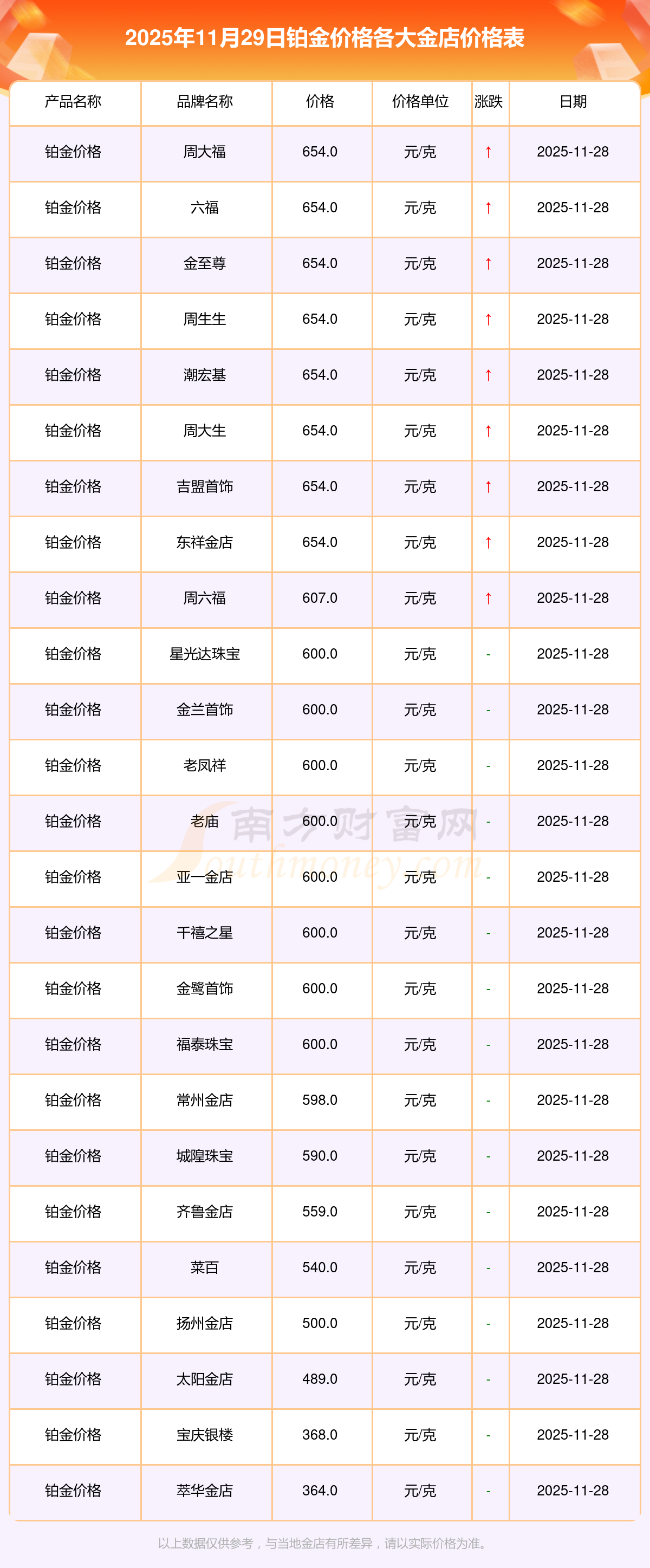 各金店鉑金價(jià)格是多少錢一克?各金店鉑金價(jià)格最新查詢