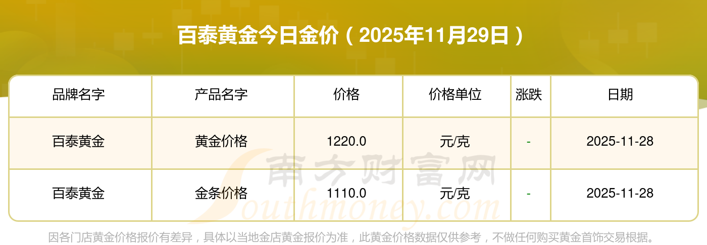 百泰黃金今天的黃金價值幾何?詳情如下: