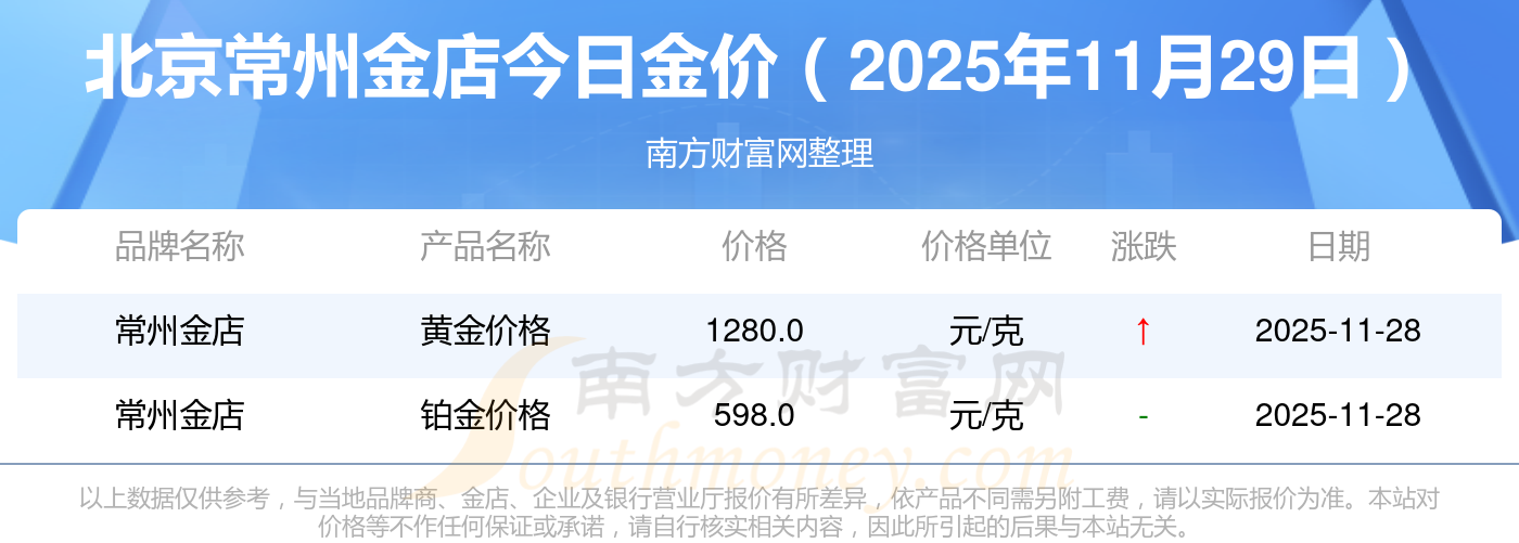 2025年11月29日北京常州金店一克黃金的售價(jià)是多少:黃金價(jià)格1321.0元/克,鉑金價(jià)格600.0元/克,銀條價(jià)格12.6元/克,黃金價(jià)格1321.0元/克,鉑金價(jià)格600.0元/克,金條價(jià)格(內(nèi)地)1207.0元/克,金飾價(jià)格(內(nèi)地)1321.0元/克,黃金飾品(香港)46370.0,鉑金飾品(香港)13970.0,金條金價(jià)(香港)41860.0,投資金條1296.0元/克。