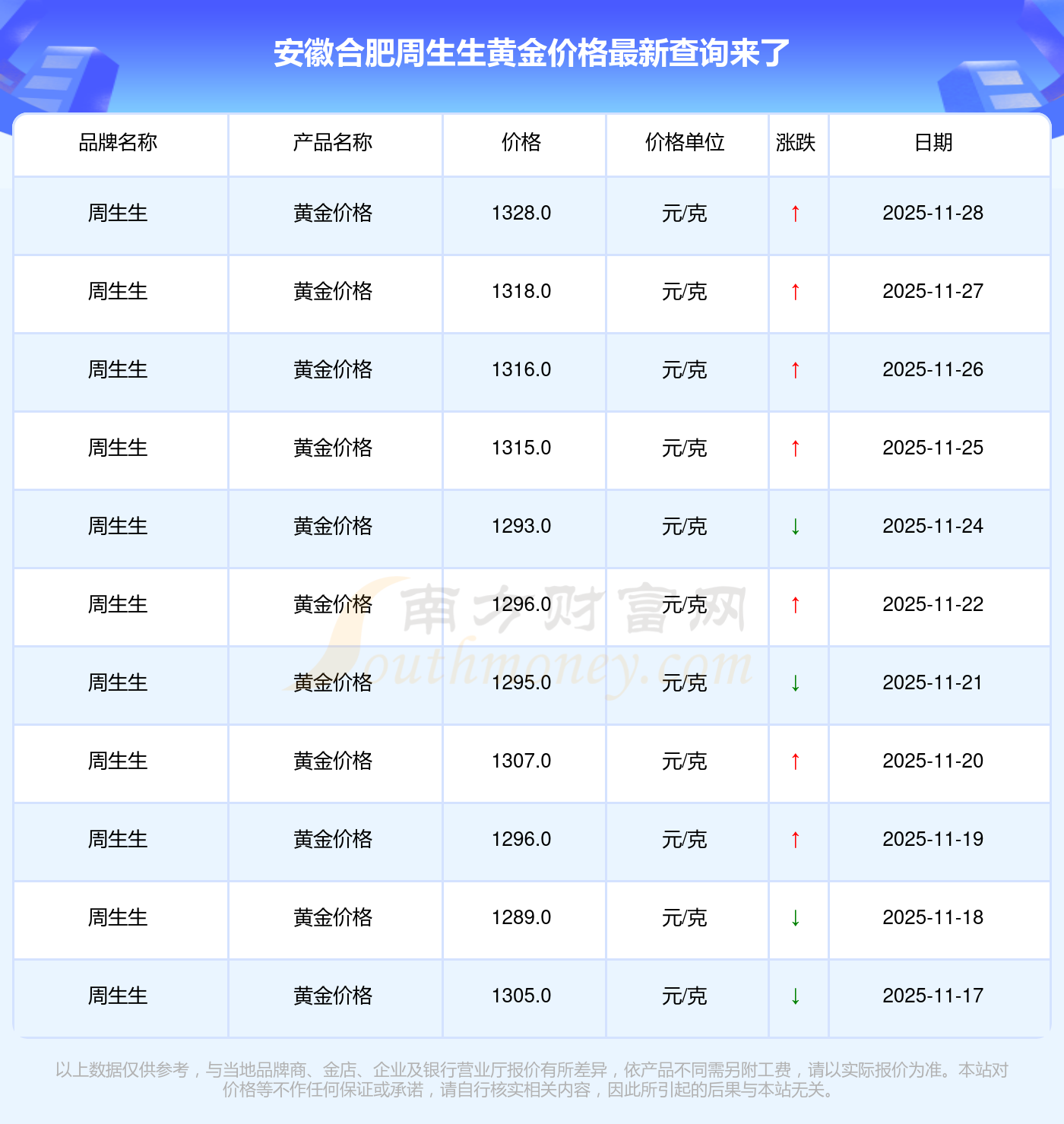 今天是2025年11月29日,星光達(dá)珠寶、星光達(dá)珠寶、寶泉錢幣、金蘭首飾、金蘭首飾、謝瑞麟、謝瑞麟、謝瑞麟、謝瑞麟、謝瑞麟、金銀街等各大金店品牌黃金價格最新價格如下:星光達(dá)珠寶1321.0元/克、星光達(dá)珠寶600.0元/克、寶泉錢幣12.6元/克、金蘭首飾1321.0元/克、金蘭首飾600.0元/克、謝瑞麟1207.0元/克、謝瑞麟1321.0元/克、謝瑞麟46370.0、謝瑞麟13970.0、謝瑞麟41860.0、金銀街1296.0元/克。