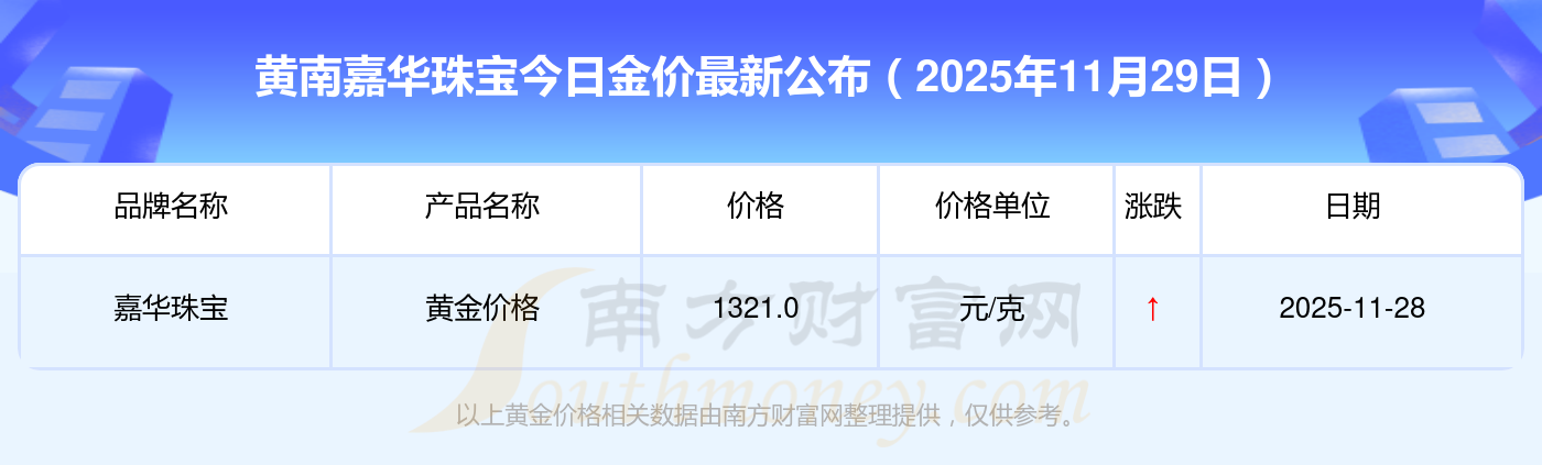 今日黃金價(jià)格查詢_現(xiàn)在金價(jià)黃金一克多少錢,黃金價(jià)格是多少錢一克?2025年11月29日黃南嘉華珠寶最新價(jià)格:黃金價(jià)格1321.0元/克,鉑金價(jià)格600.0元/克,銀條價(jià)格12.6元/克,黃金價(jià)格1321.0元/克,鉑金價(jià)格600.0元/克,金條價(jià)格(內(nèi)地)1207.0元/克,金飾價(jià)格(內(nèi)地)1321.0元/克,黃金飾品(香港)46370.0,鉑金飾品(香港)13970.0,金條金價(jià)(香港)41860.0,投資金條1296.0元/克。