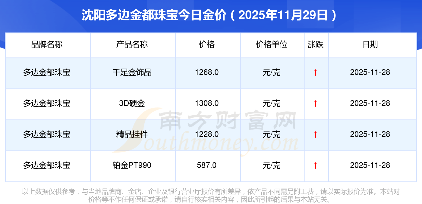 2025年11月29日沈陽多邊金都珠寶現(xiàn)在購買一克黃金需要支付多少錢?黃金價格1321.0元/克,鉑金價格600.0元/克,銀條價格12.6元/克,黃金價格1321.0元/克,鉑金價格600.0元/克,金條價格(內(nèi)地)1207.0元/克,金飾價格(內(nèi)地)1321.0元/克,黃金飾品(香港)46370.0,鉑金飾品(香港)13970.0,金條金價(香港)41860.0,投資金條1296.0元/克。