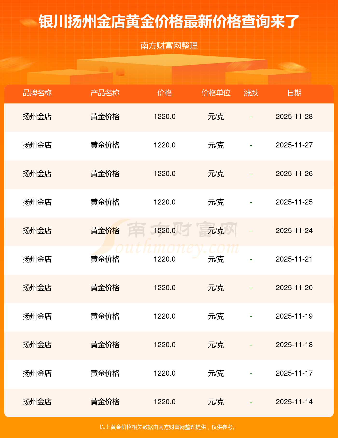 因各門店黃金價格報價有差異,具體以當?shù)亟鸬挈S金報價為準,此黃金價格數(shù)據(jù)僅供參考,不做任何購買黃金首飾交易根據(jù)。