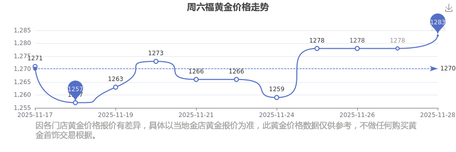 今日黃金價(jià)格具體是多少?現(xiàn)在一克黃金賣多少錢(qián)?黃金每克的價(jià)位一般在什么水平呢?今日周六福 黃金價(jià)格的最新定價(jià)為1283.0元/克。