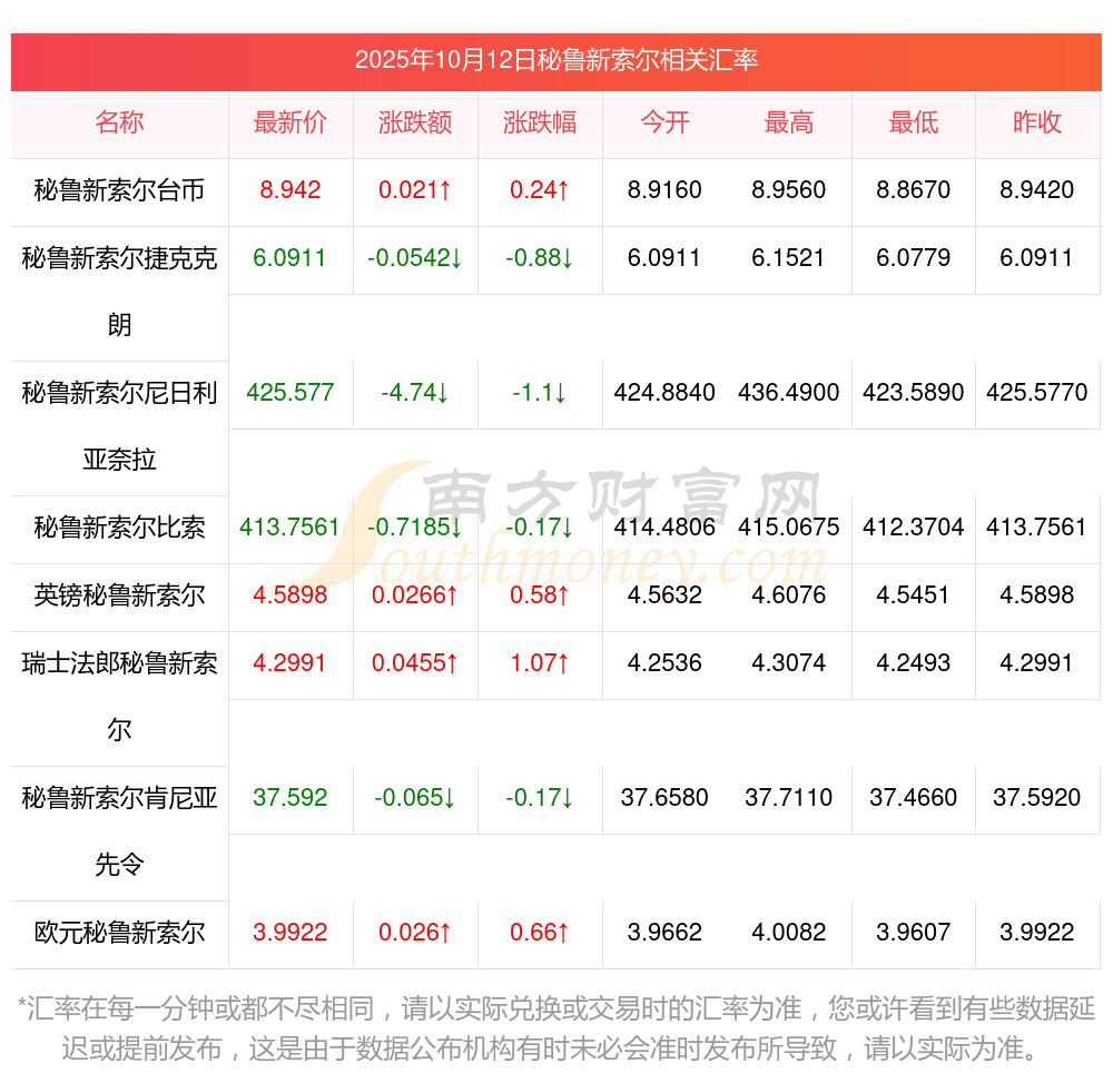 南方財富網為您提供秘魯新索爾對典幣匯率最新價格詳情。
