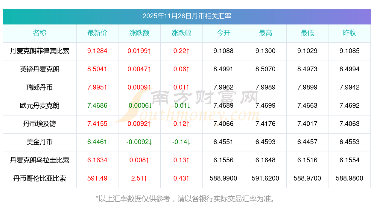 根據(jù)2025年11月26日匯率計算,DKK兌換CLP匯率最新價145.077000:今開價144.9680,昨收價144.9630,最高價145.1290,最低價144.8370。