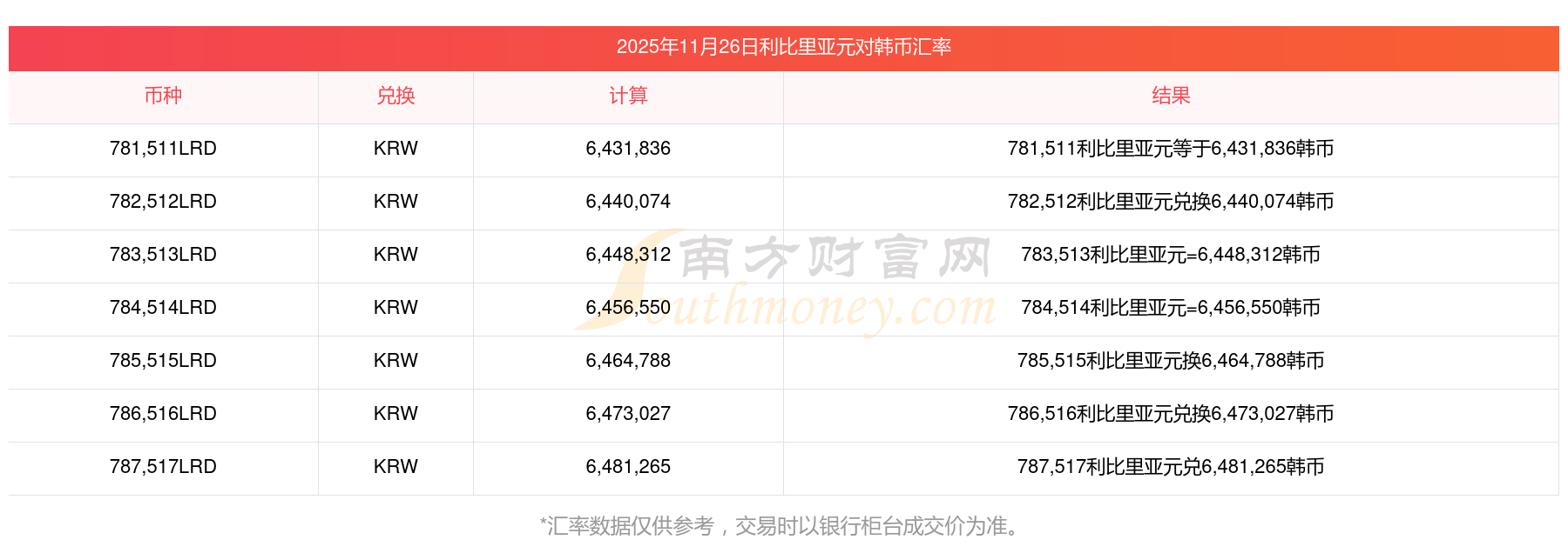 今天130利比里亞元轉(zhuǎn)換為韓幣匯率如何計(jì)算?2025/11/26