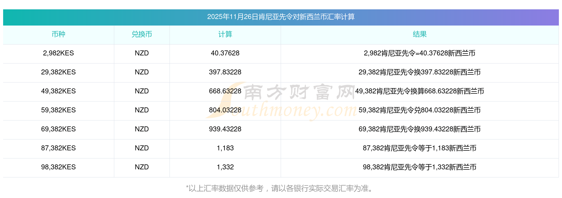 2025年11月26日23肯尼亞先令計算新西蘭幣等于多少?