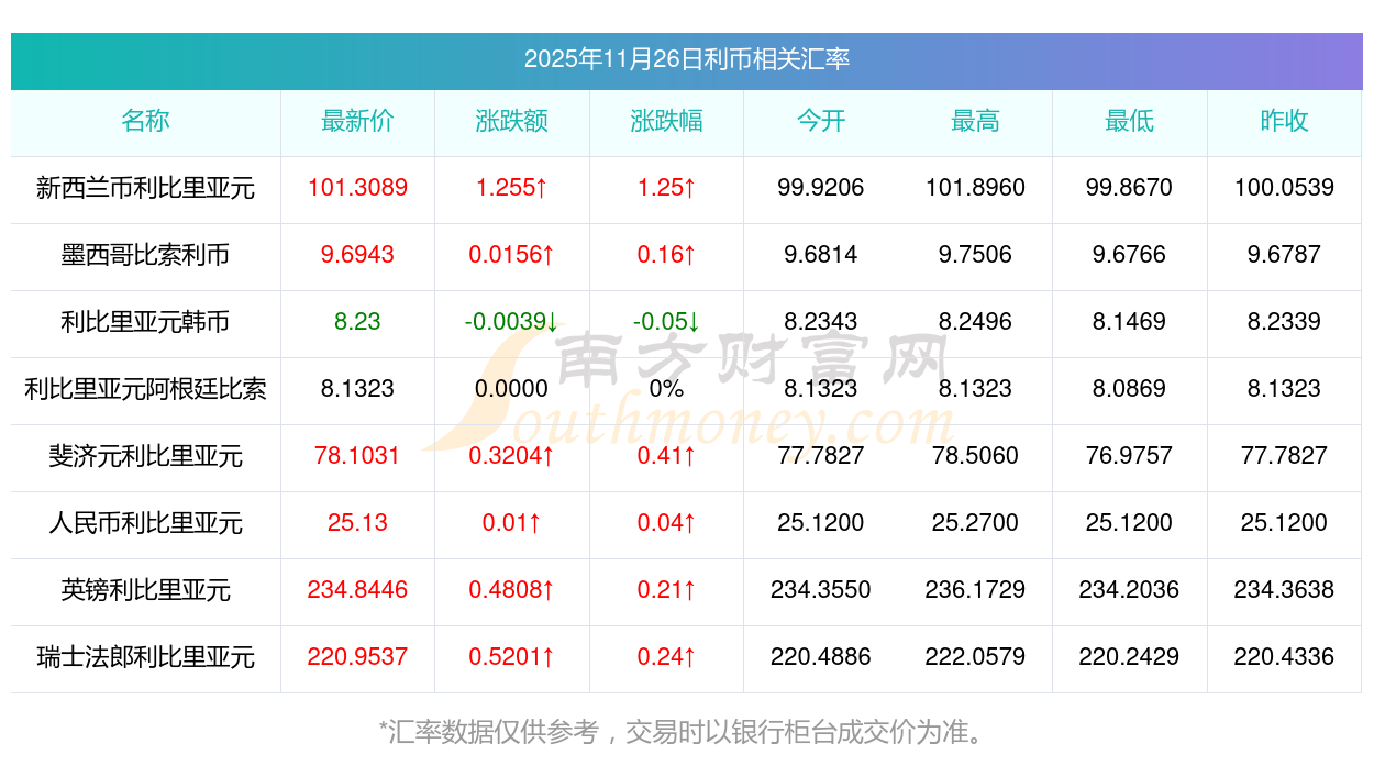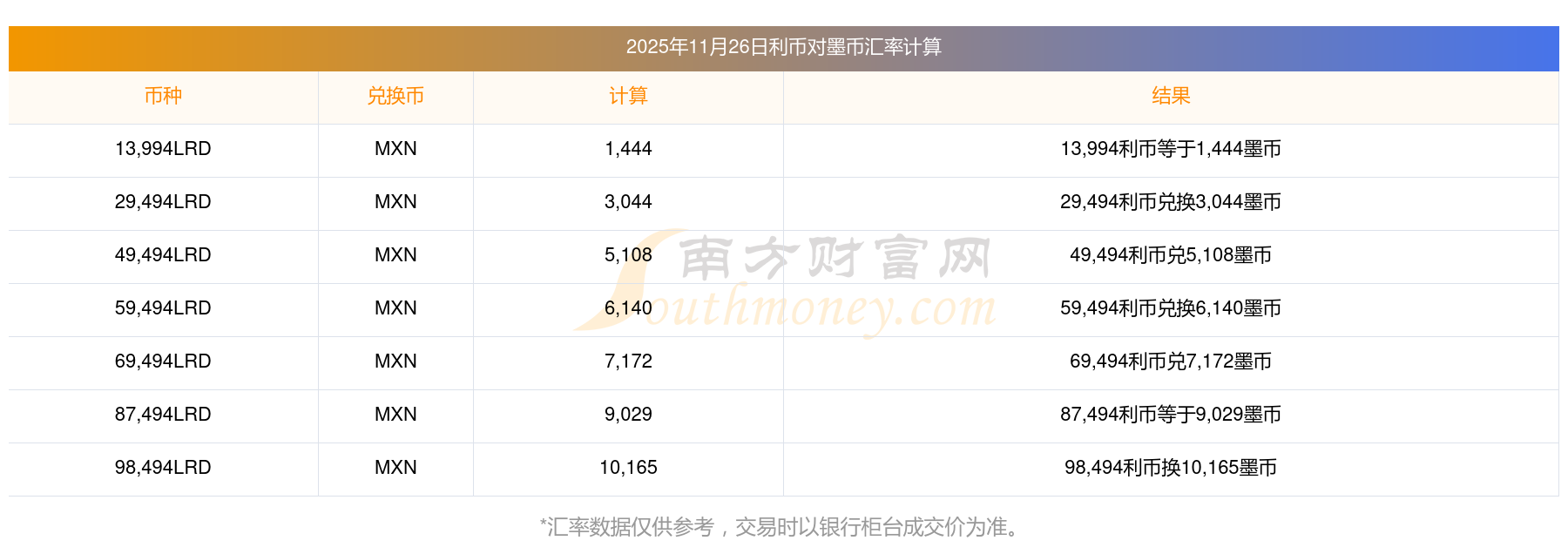 今天利幣外匯價(jià)格 2025/11/266利幣兌換墨幣是多少?