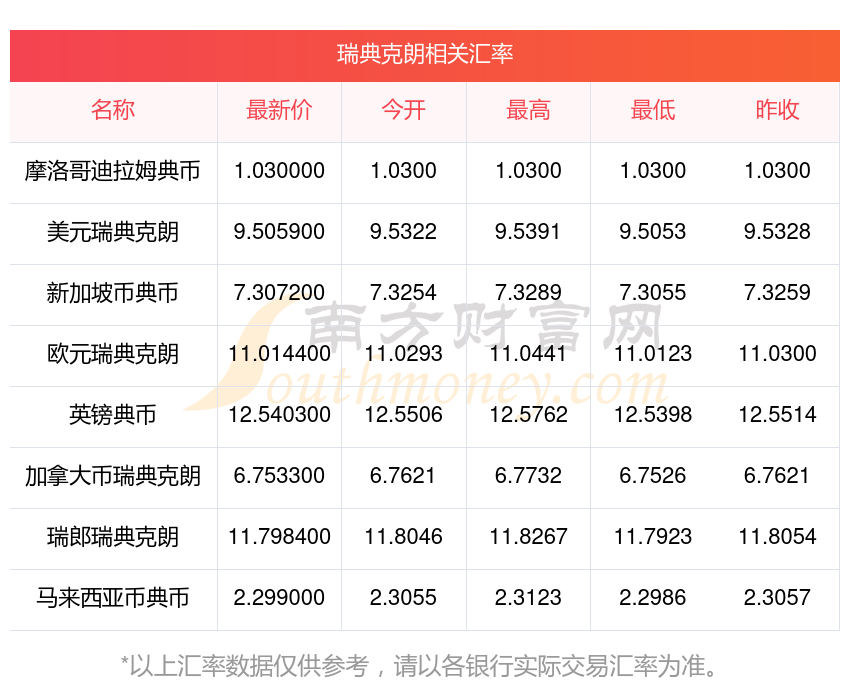2025年11月26日瑞典克朗相關(guān)匯率查詢