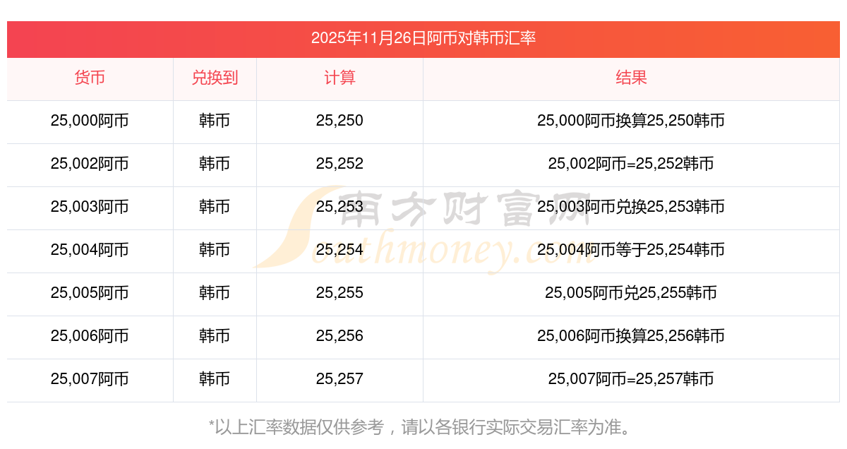今天阿幣兌韓幣匯率今日查詢_各國貨幣在線轉(zhuǎn)換2025/11/26