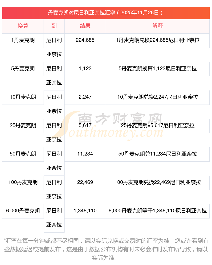 今天丹麥克朗轉(zhuǎn)換尼日利亞奈拉匯率多少_匯率走勢 2025-11-26