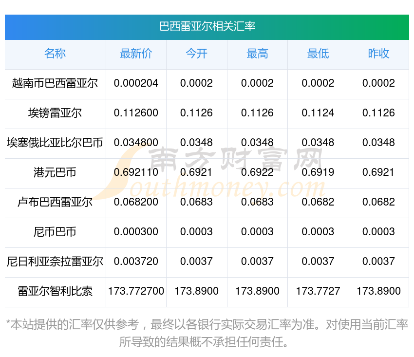 南方財(cái)富網(wǎng)為您提供巴西雷亞爾對(duì)阿根廷比索匯率最新價(jià)格詳情。