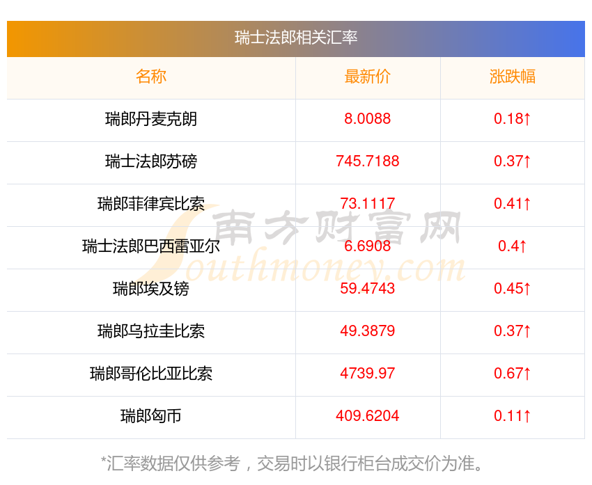 2025年11月26日瑞士法郎相關(guān)匯率查詢