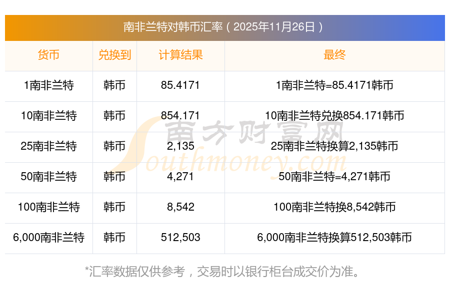 今天南非蘭特對(duì)韓幣匯率_17南非蘭特對(duì)韓幣匯率多少(2025-11-26)