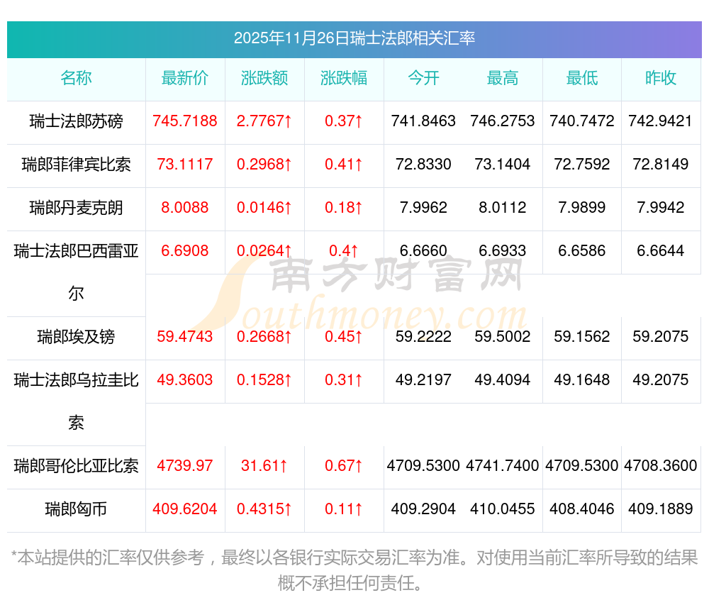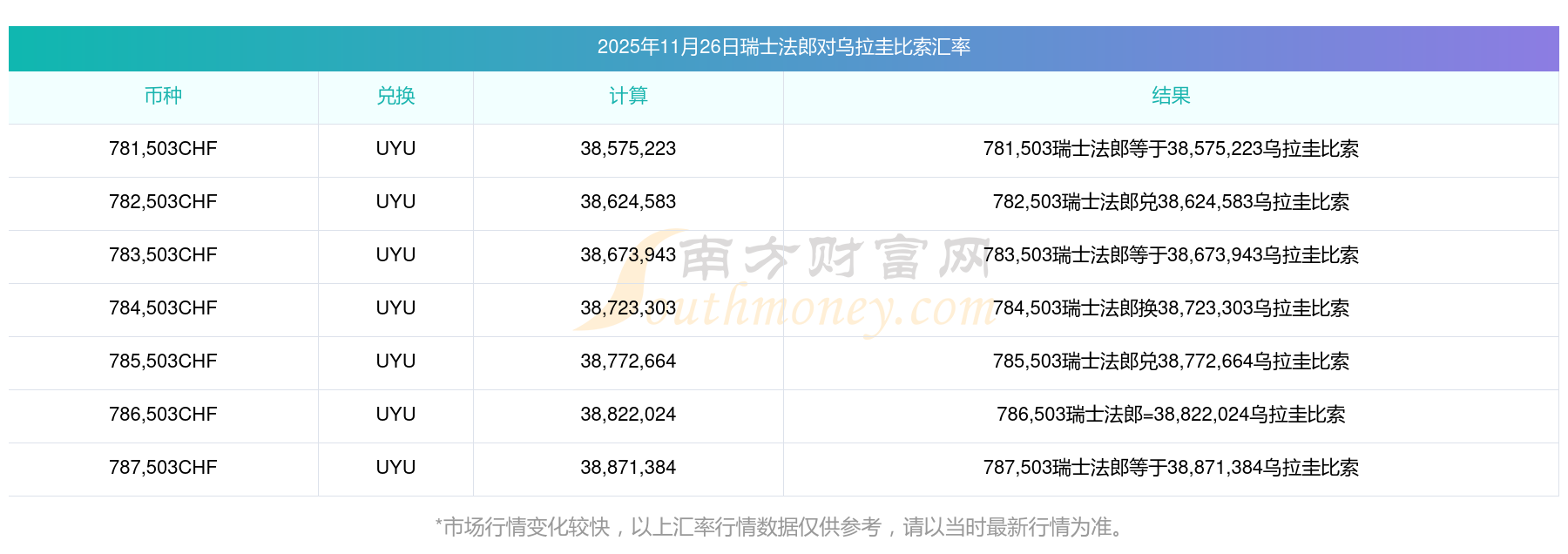 今天7兌換率 | 將瑞士法郎轉(zhuǎn)換為烏拉圭比索是多少? 2025-11-26